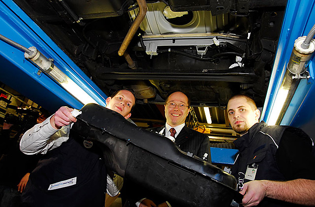 Bei der ersten Ergebnis-Präsentation wurde eine bisherige These widerlegt: Die nämlich, dass Autogas-Pkw für den Start des Triebwerkes und den ruckelfreien Warmlauf in der Startphase nicht auf Benzin verzichten könnten. Dazu hatten Studenten der HTW den Benzintank des Versuchsfahrzeugs, ein Hyundai i10, ausgebaut. Die Monovalenz, also der alleinige Autogas-Betrieb war ein wichtiger Baustein der Untersuchungen. Die Wissenschaftler machten sich die höhere Klopffestigkeit von Autogas (ca. 107 Oktan) gegenüber Benzin (ca. 95 Oktan) zunutze. «Schon die Umrüstung auf Autogas ergab eine CO2-Einsparung von etwa zehn Prozent», erklärte Heinze. Weitere Einsparungen ergaben sich durch spezielle Schmierstoffe, Leichtlaufreifen oder auch ein verbessertes Abgassystem.
