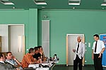 Als Experten waren unter anderem Prof. Dr. Harald Altjohann und der Wissenschaftliche Mitarbeiter Dipl.-Wirtsch.-Ing. (FH) Volker Witte vom Projekt CO2-100minus eingeladen worden. In einem mehrstündigen Vortrag mit anschließender Diskussion stellten die beiden die verschiedenen Forschungsprojekte an der HTW Saarland vor. Neben der Autogastechnik (zum Beispiel im Projekt CO2-100minus und Forschungen zur Additivierung) befasst sich die Forschungsgruppe Automotive Powertrain rund um den Motor mit Abgasreinigung, Brennverfahren, Messtechnik, Funktionsentwicklung und der Entwicklung von Steuergeräten.